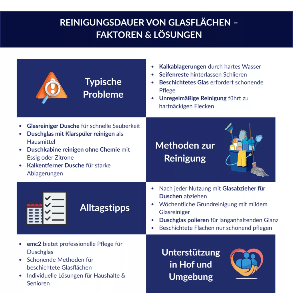 Die Glasreinigung in der Dusche erfordert oft Geduld und Fachkenntnisse. In Hof and surroundings bietet emc2 professionelle Unterstützung – sei es bei der gründlichen Pflege der Duschwand richtig reinigen, der Nutzung spezieller Mittel oder der Beratung zu beschichteten Glasflächen.